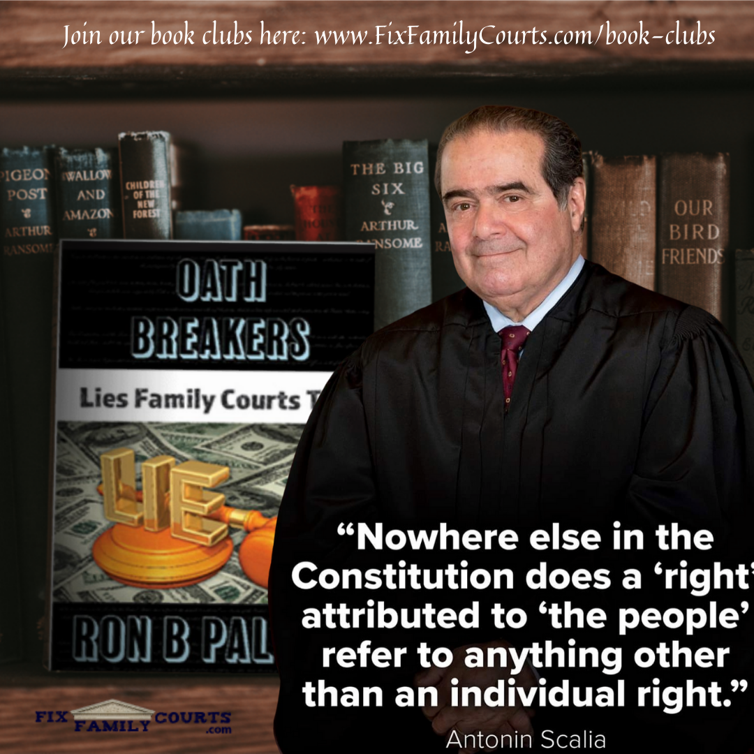 Divorce Court's Best Interest Divorce court judges who deny a child's right to free and equal association with both fit parents are acting in the divorce court's best interests. ID: 2147 Best Interest is Arbitrary Discrimination The best interests of the child standard is the most powerful basis for arbitrary and capricious discrimination the family law system has ever seen. ID: 2148 Fit Parent Over Parens Patriae A fit parent's interest in equal custody & companionship with their child simply outweighs the state's parens patriae interests even in divorce. ID: 2149 Who rules over you? To learn who rules over you simply find out who you are not allowed to criticize. ID: 2150 Texas Penal Code 25.03 Texas Penal Code 25.03. Interference with child custody. ID: 2151 Family Court Sucks Divorce court judges destroy parent-child bonds! ID: 2152 Scalia Says Rights are Individual Rights Nowhere else in the Constitution does a right attributed to the people refer to anything other than an individual right ID: 2185